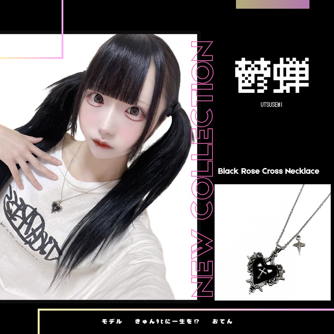 神秘的な黒薔薇と十字架の融合、「Black Rose Cross Necklace」!