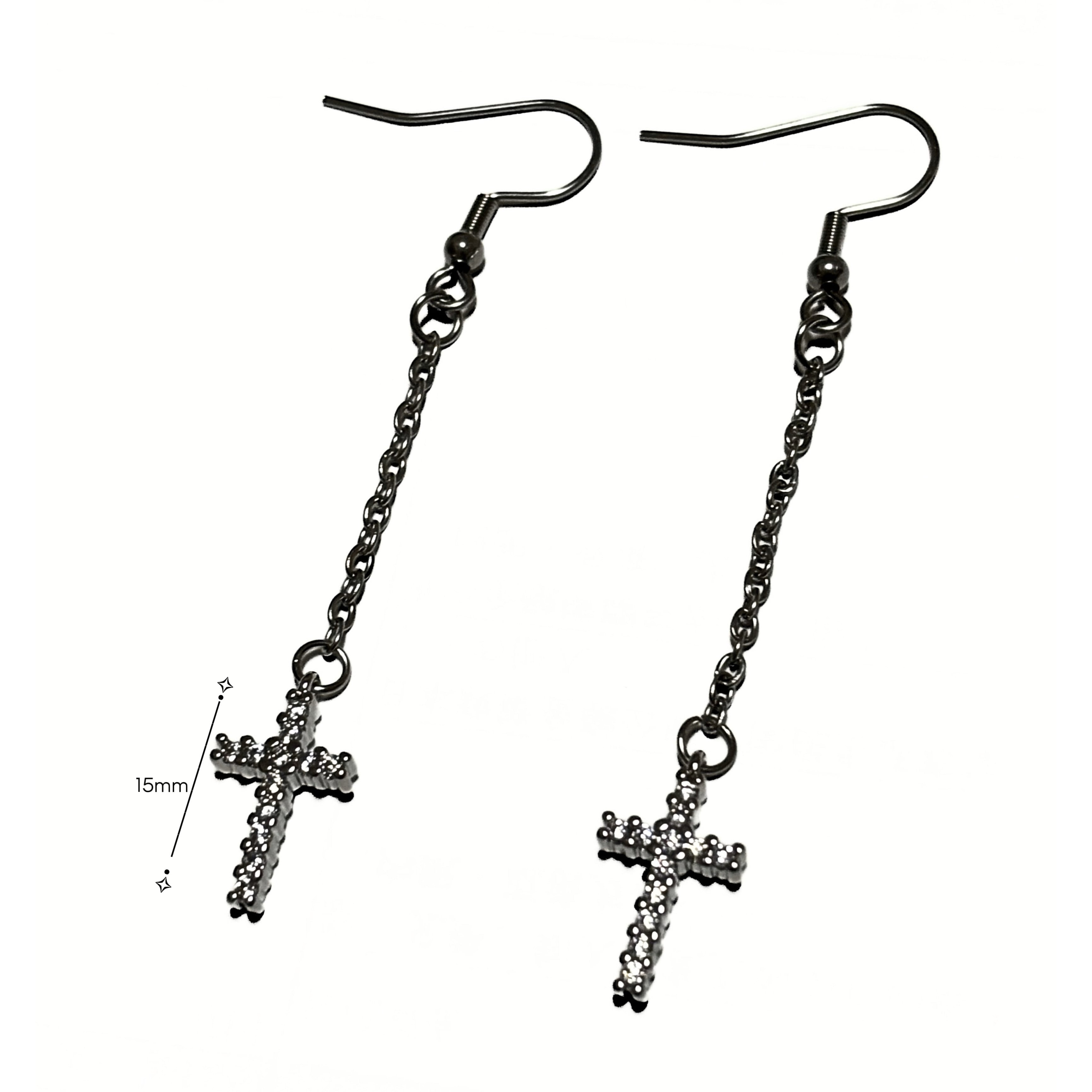 「Dark Cross Chain Earrings」2個セット