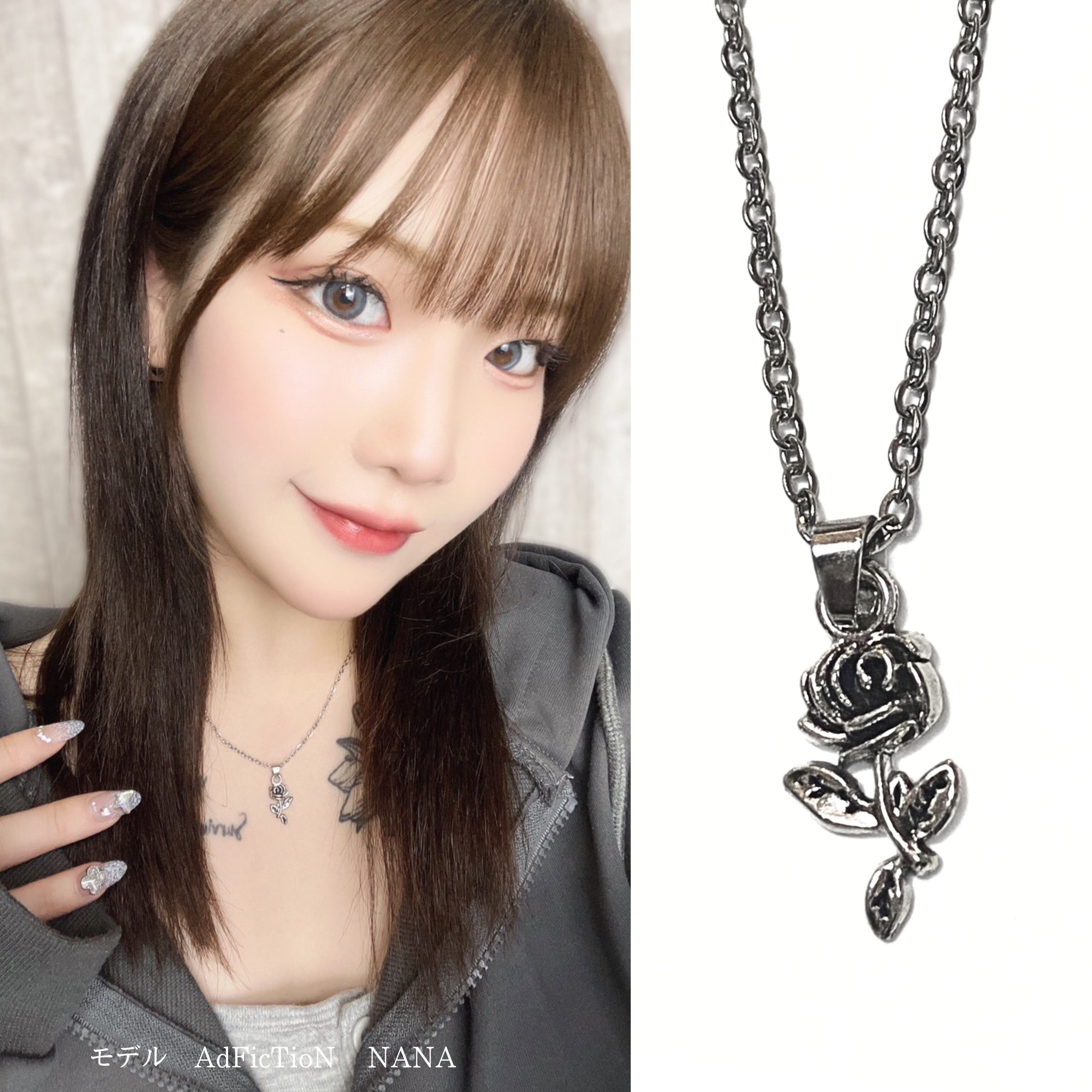 ROSEネックレスは、美しい薔薇のデザインが特徴のアクセサリー。繊細な葉っぱや花びらのディテールが、華やかでエレガントな印象を与えます。シンプルながらも存在感があり、コーディネートのポイントになること間違いなしです。大切な日の装いや普段使いにもおすすめです。
